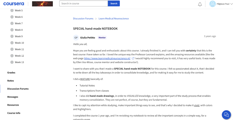 ✔️ Coursera has a forum for each course to allow admins to share announcements for the students enrolled in a course.