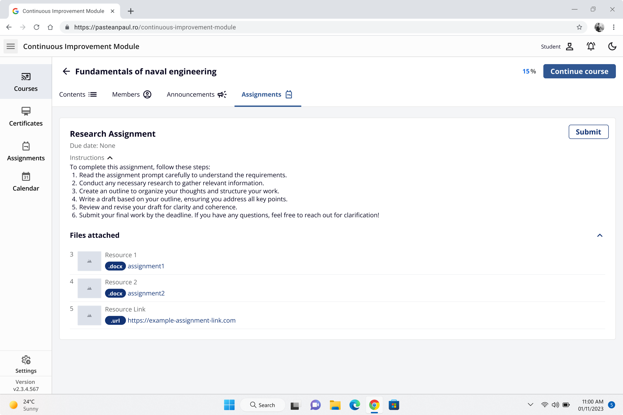 👀 Seeing the contents of a course and their materials can be done by both admins(previewing) and students(starting/continuing).